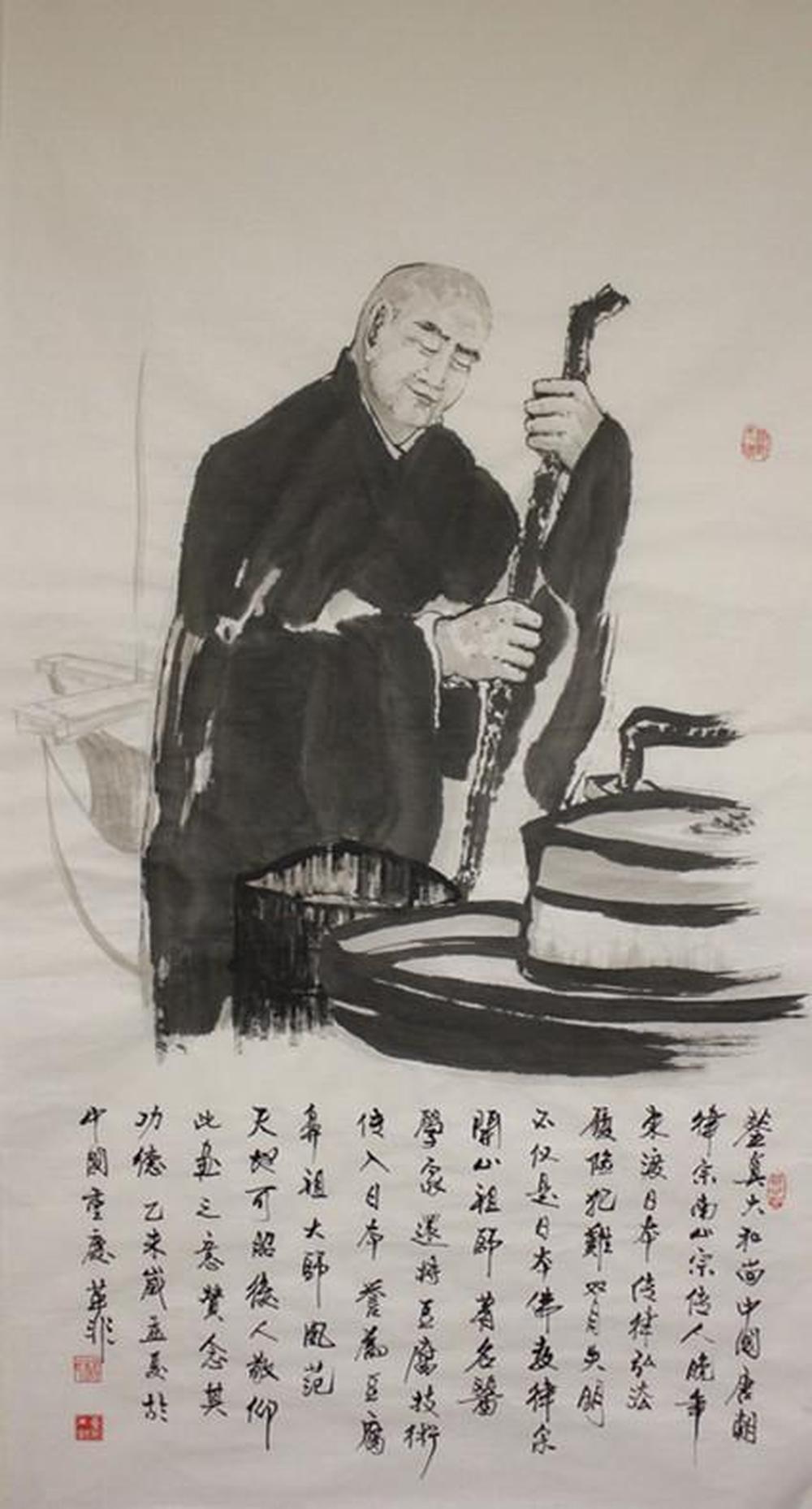 作品以纯水墨形式,描述鉴真和尚东渡日本,带去了豆腐的制作技术,更是佛教文化的传承。